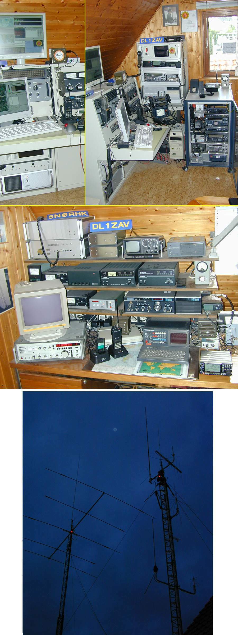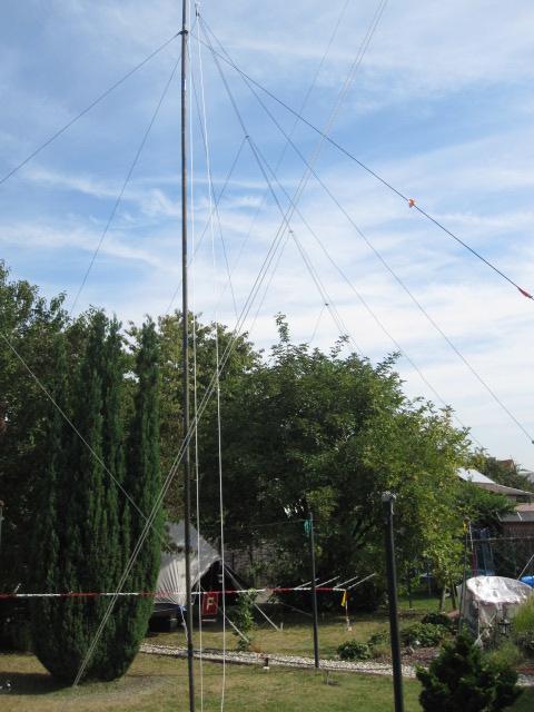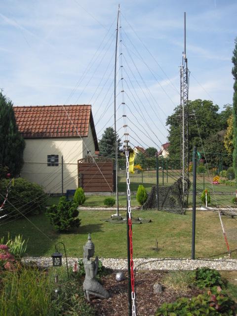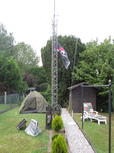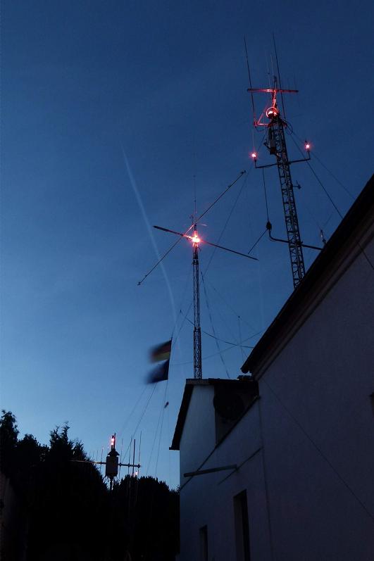 Antennas HF back, APRS & V/UHF-X-Band-Repeater front left, V/UHF front right at